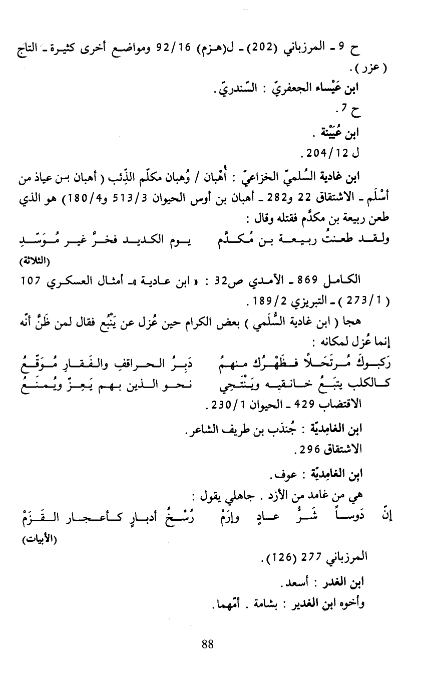 ح 9 - المرزباني (202) - ل (هزم) 92/ 16 ومواضع أخرى كثيرة- التاج (عزر).