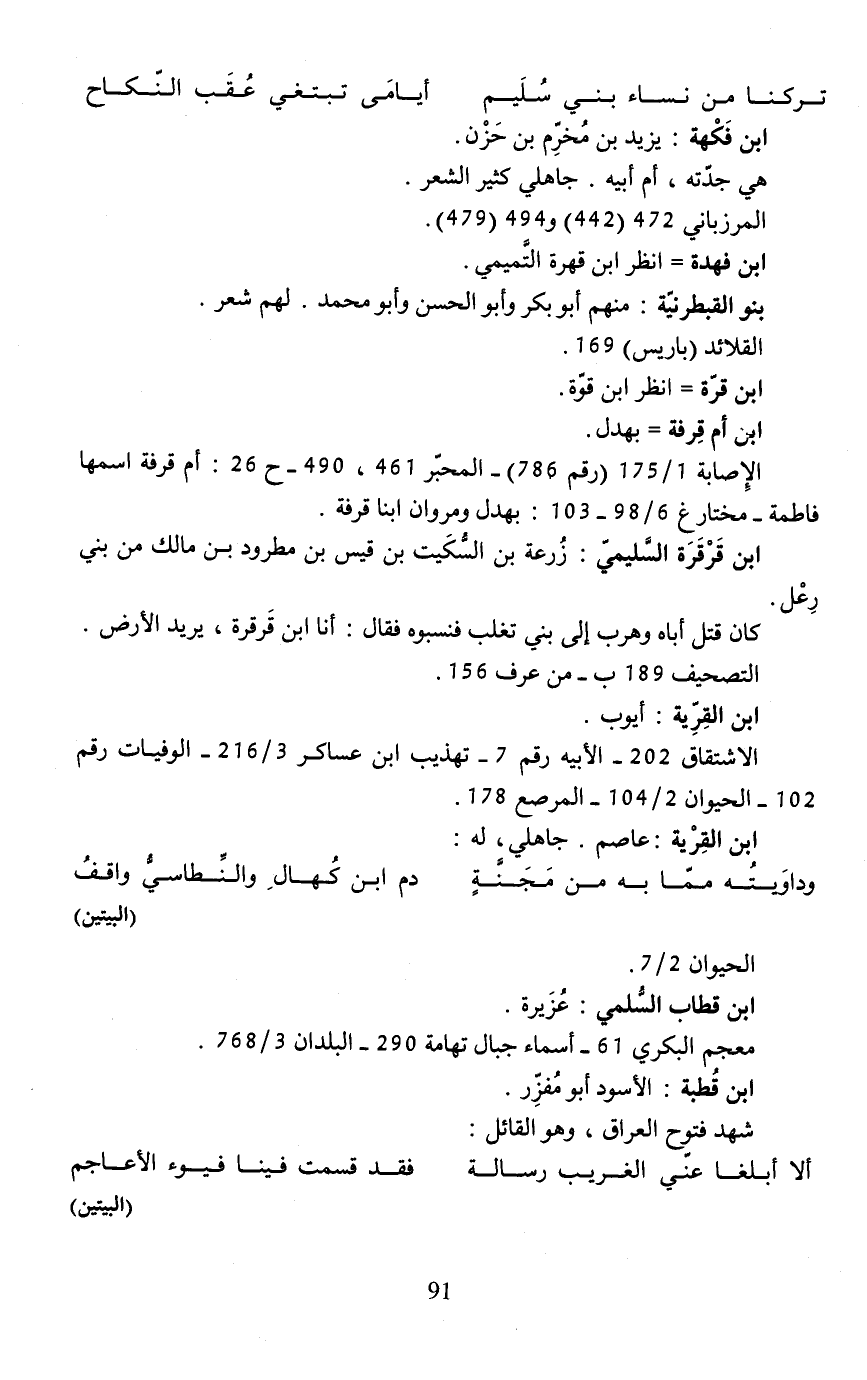 الاشتقاق 202 - الأبيه رقم 7 - تهذيب ابن عساكر 3/ 216 - الوفيات رقم 102 - الحيوان 2/ 104 - المرصع 178.