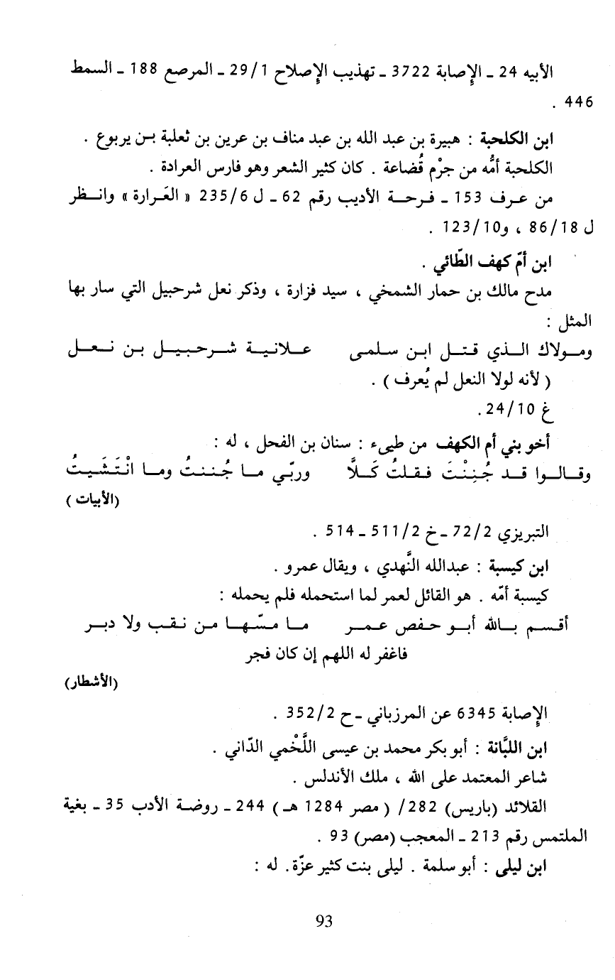 الأبيه 24 - الإِصابة 3722 - تهذيب الإِصلاح 1/ 29 - المرصع 188 - السمط 446.