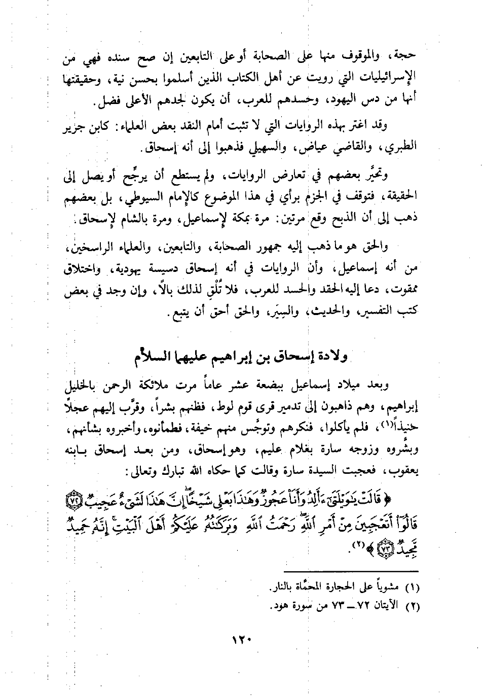 حجة، والموقوف منها على الصحابة أو على التابعين إن صح سنده فهي من الإسرائيليات التي رويت عن أهل الكتاب الذين أسلموا بحسن نية، وحقيقتها أنها من دس اليهود، وحسدهم للعرب، أن يكون لجدهم الأعلى فضل.