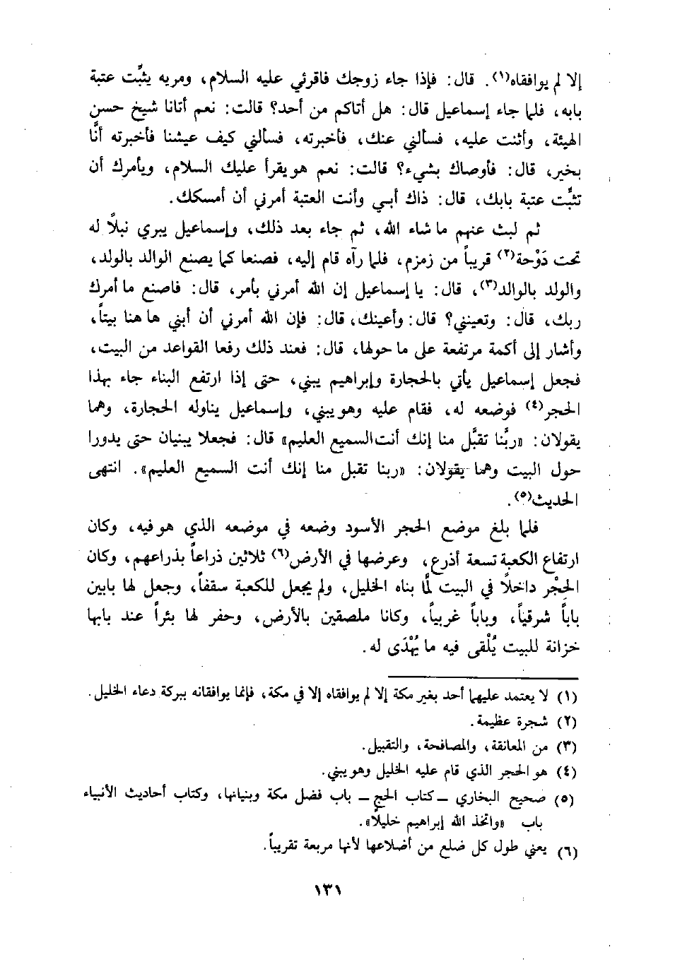 (5) صحيح البخاري- كتاب الحج- باب فضل مكة وبنيانها، وكتاب أحاديث الأنبياء باب «واتخذ الله إبراهيم خليلا» .