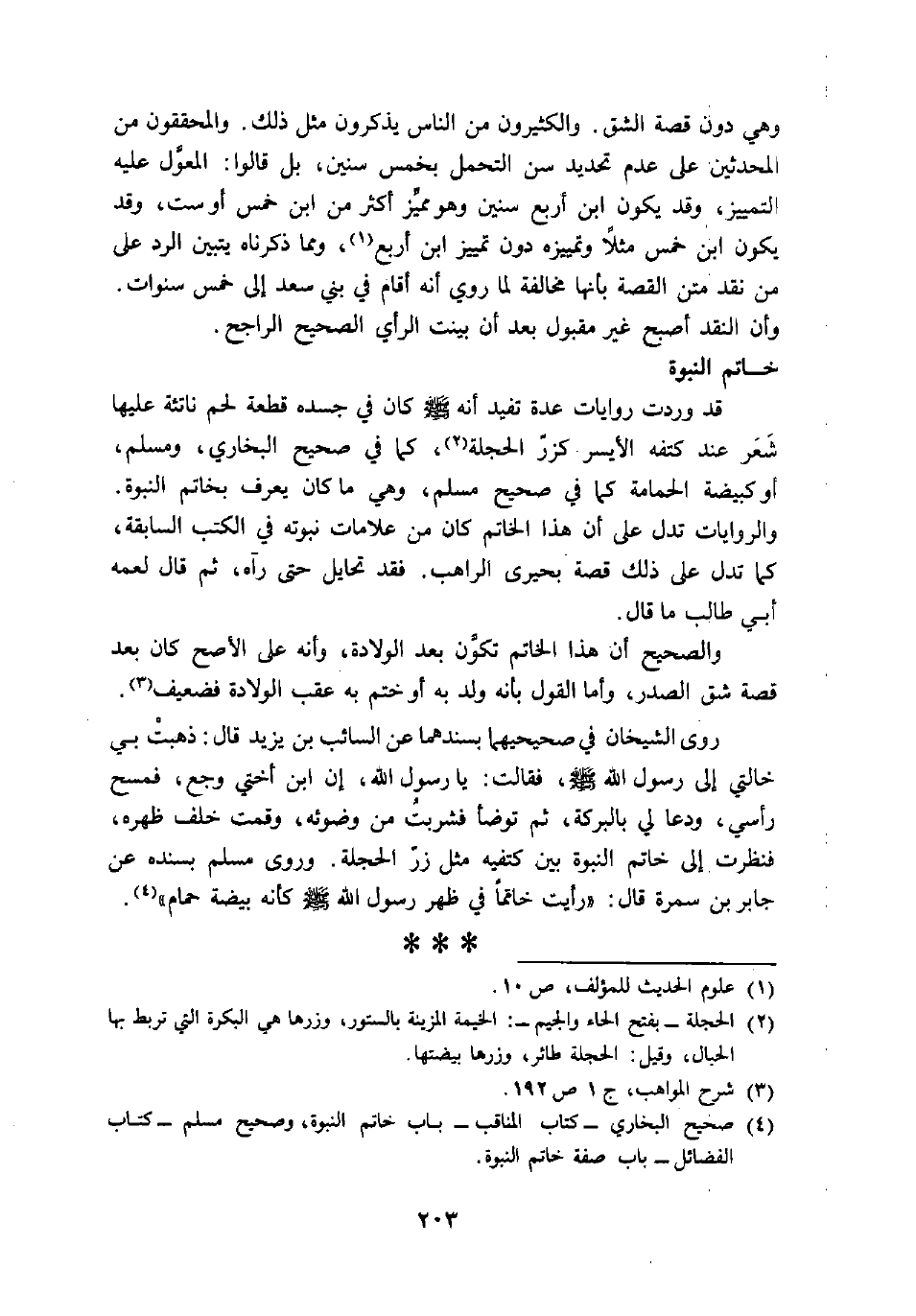 (4) صحيح البخاري- كتاب المناقب- باب خاتم النبوة، وصحيح مسلم- كتاب الفضائل- باب صفة خاتم النبوة.