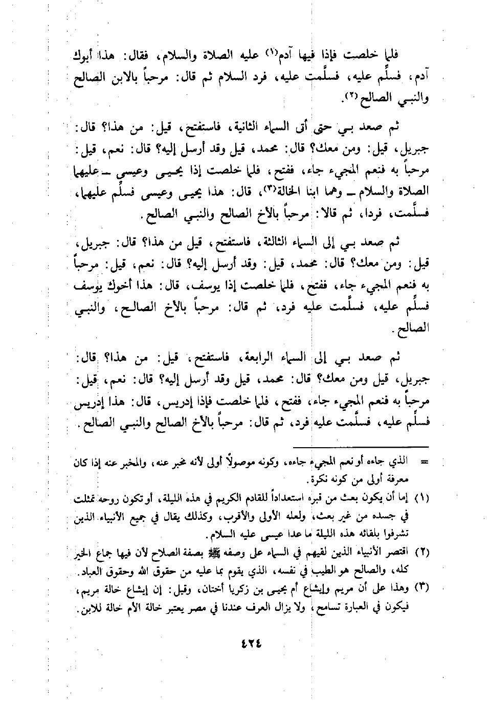 (2) اقتصر الأنبياء الذين لقيهم في السماء على وصفه صلّى الله عليه وسلّم بصفة الصلاح لأن فيها جماع الخير كله، والصالح هو الطيب في نفسه، الذي يقوم بما عليه من حقوق الله وحقوق العباد.