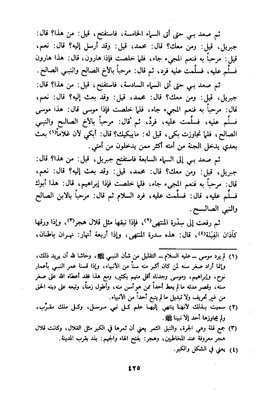 ثم صعد بي حتى أتى السماء الخامسة، فاستفتح، قيل: من هذا؟ قال: