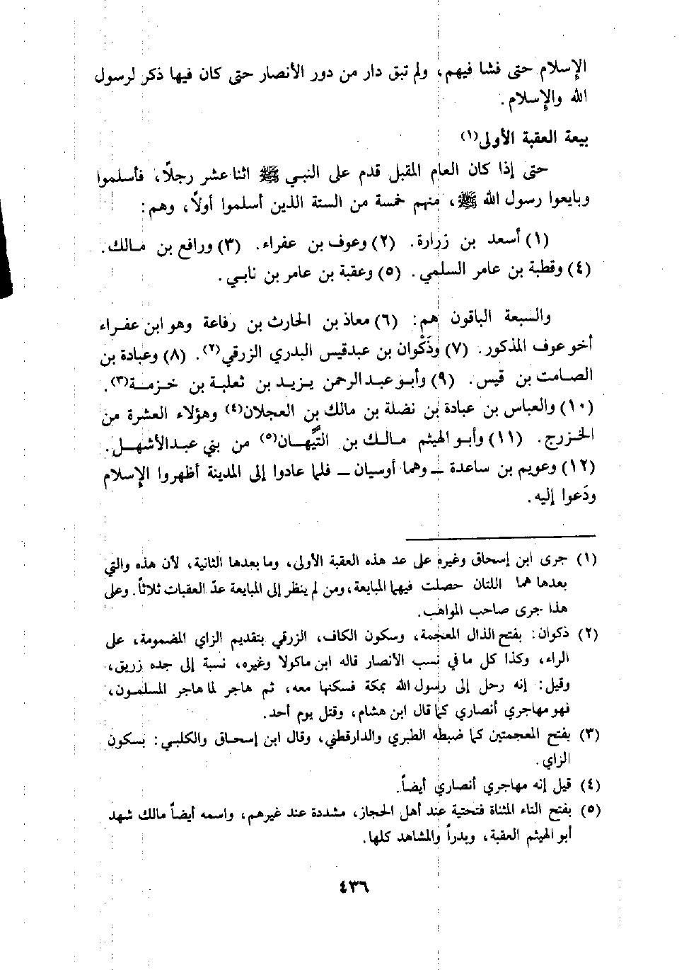 (1) جرى ابن إسحاق وغيره على عد هذه العقبة الأولى، وما بعدها الثانية، لأن هذه والتي بعدها هما اللتان حصلت فيهما المبايعة، ومن لم ينظر إلى المبايعة عدّ العقبات ثلاثا. وعلى هذا جرى صاحب المواهب.