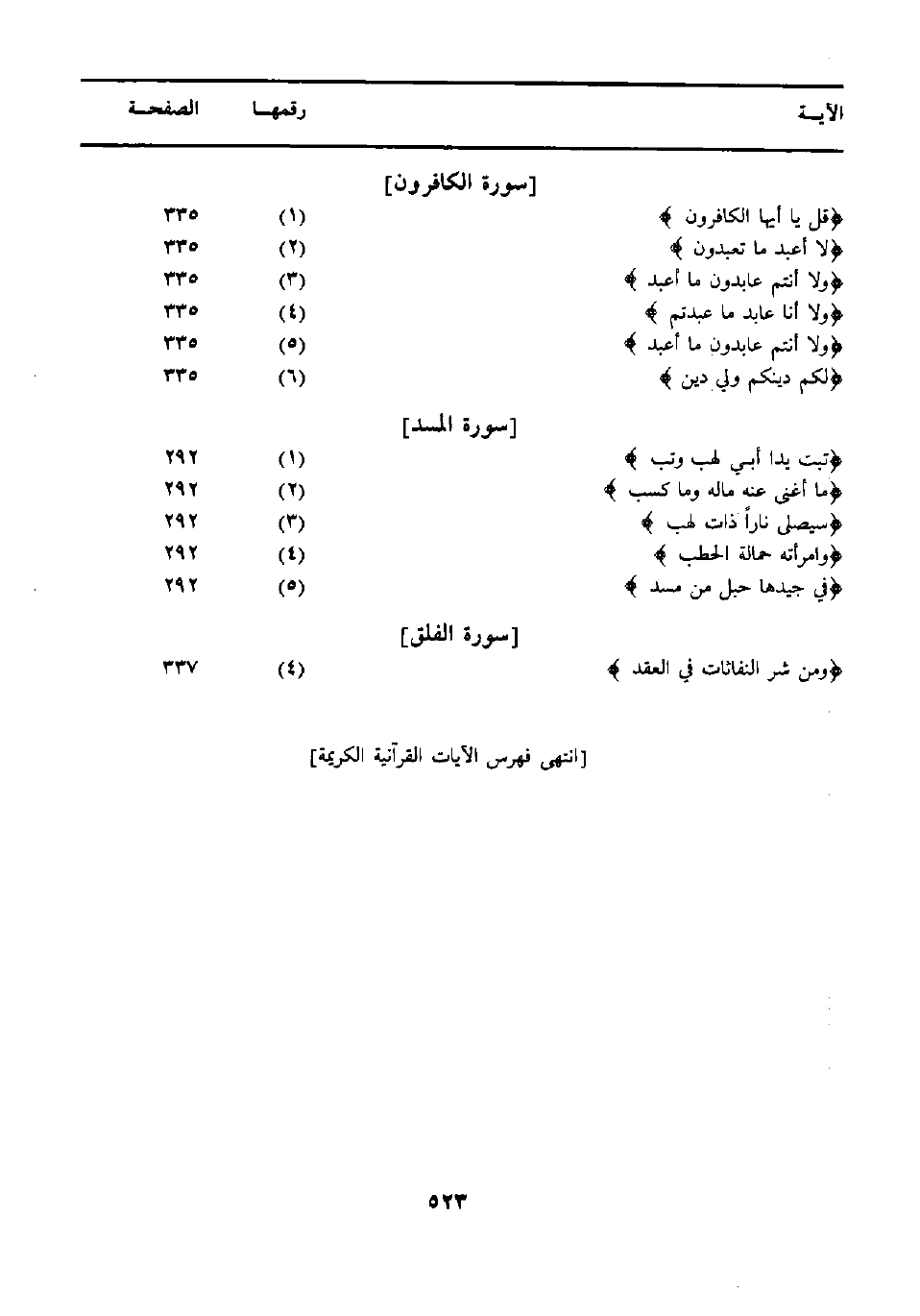 [انتهى فهرس الايات القرانية الكريمة]
