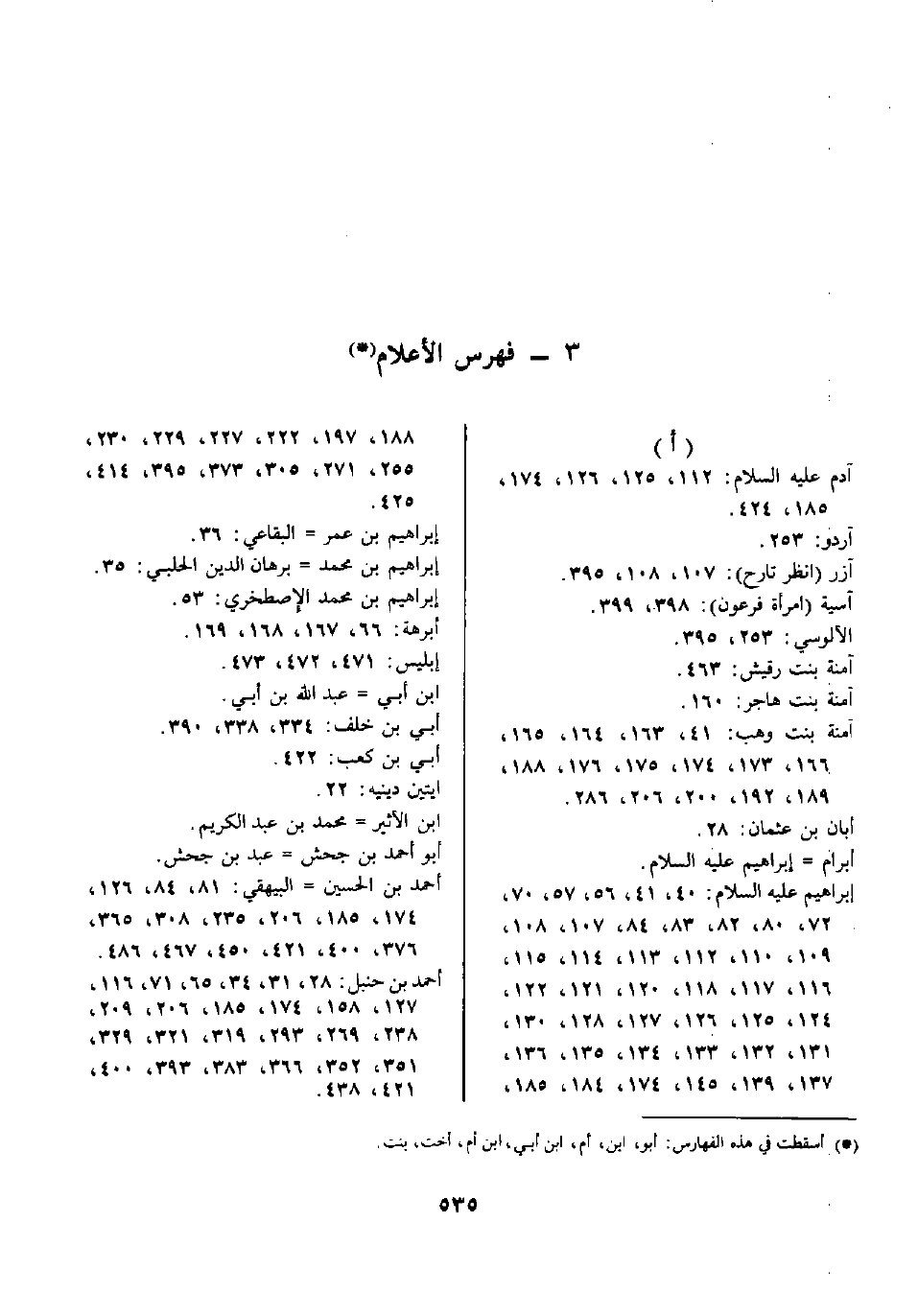 * أسقطت في هذه الفهارس: أبو، ابن، أم، ابن أبي، ابن أم، أخت، بنت.