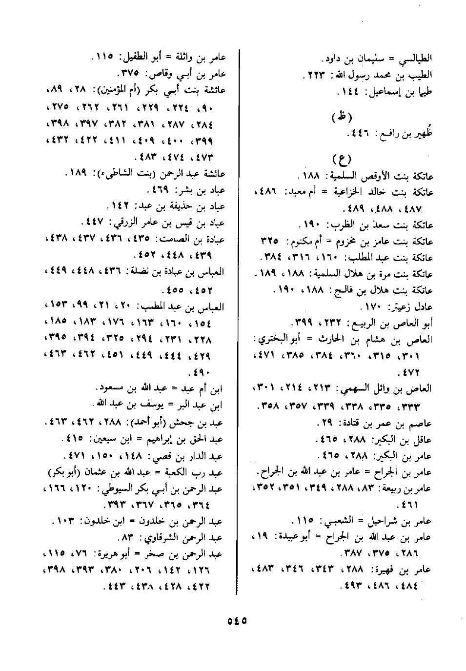 عبد الرحمن بن صخر- أبو هريرة: 76، 115، 126، 142، 206، 380، 393، 398، 422، 428، 438، 443.