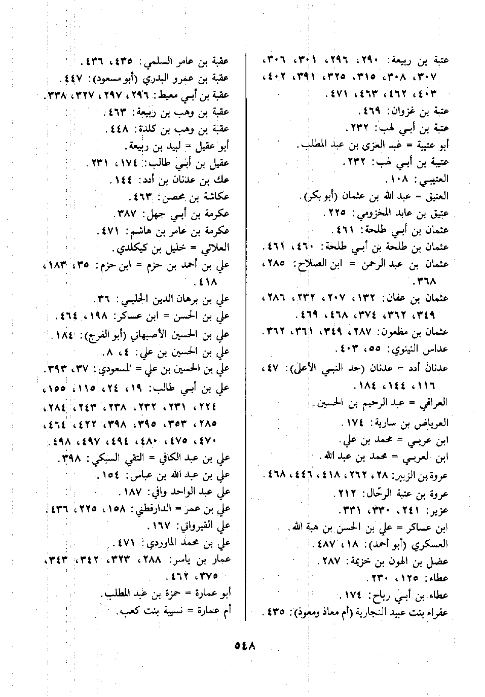 عتبة بن ربيعة: 290، 296، 301، 306، 307، 308، 315، 325، 391، 402، 403، 462، 463، 471.