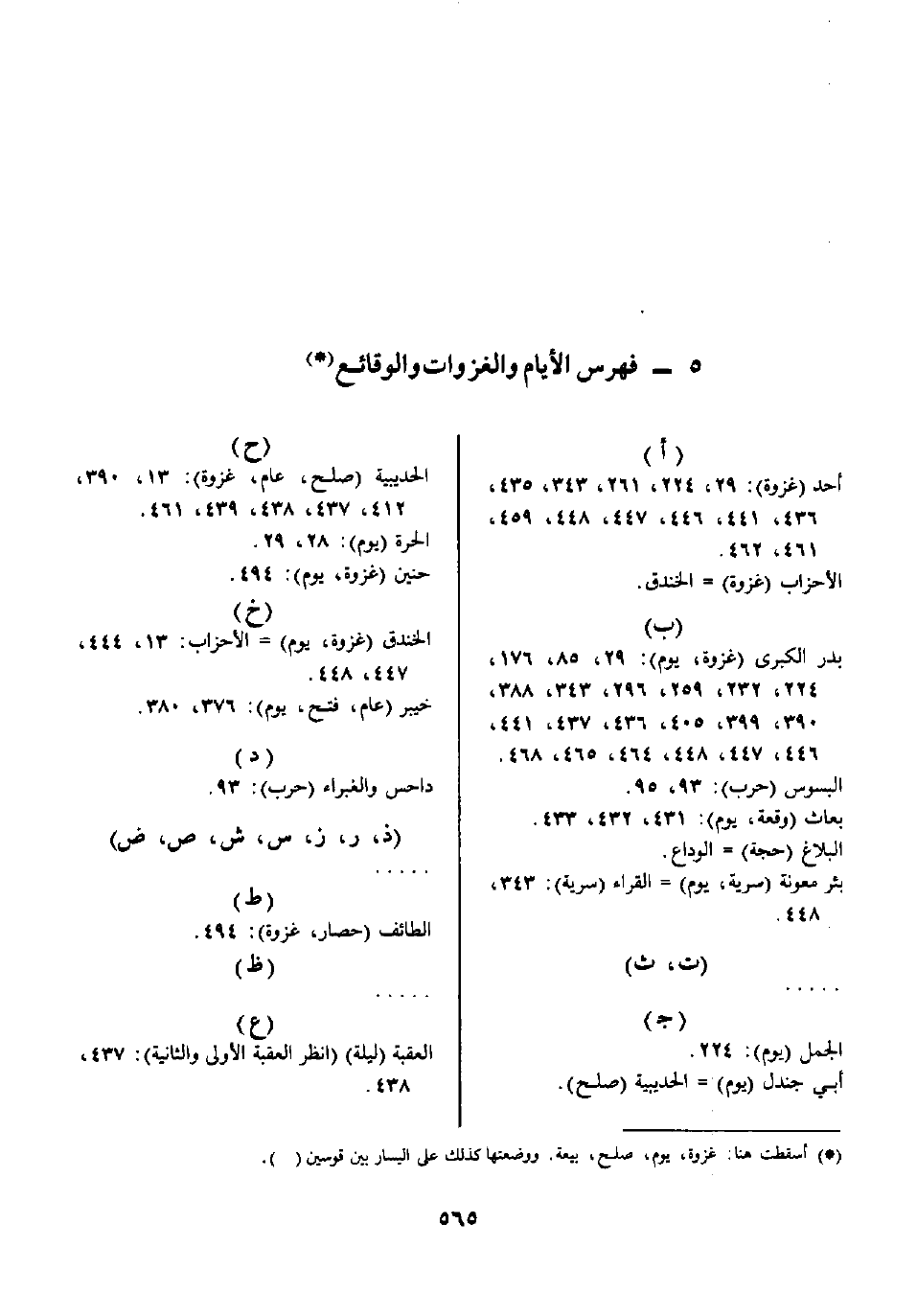 5- فهرس الأيام والغزوات والوقائع*