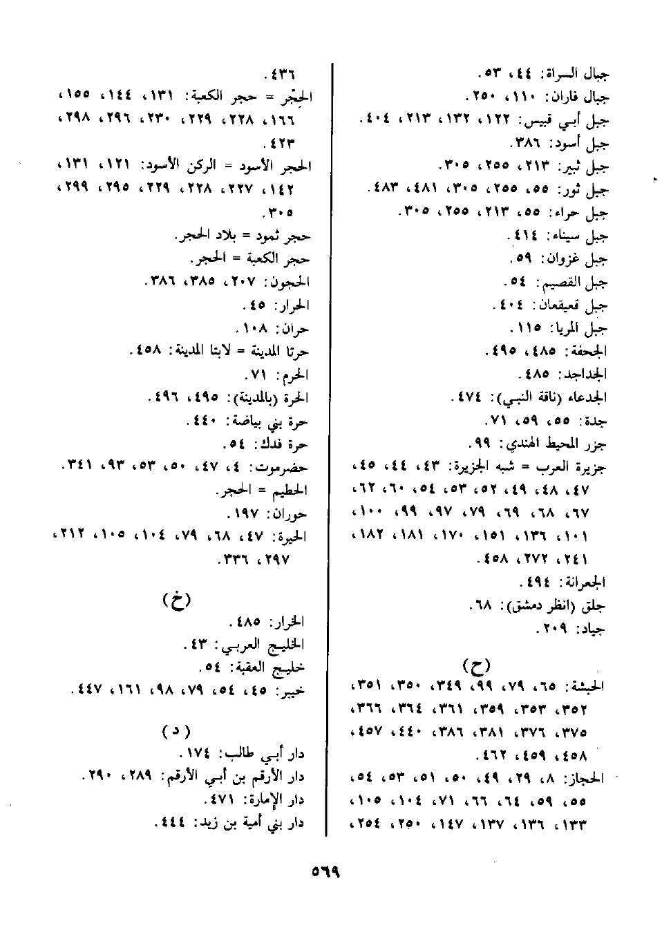 الحجاز: 8، 29، 49، 50، 51، 53، 54، 55، 59، 64، 66، 71، 104، 105، 133، 136، 137، 147، 250، 254، 436.