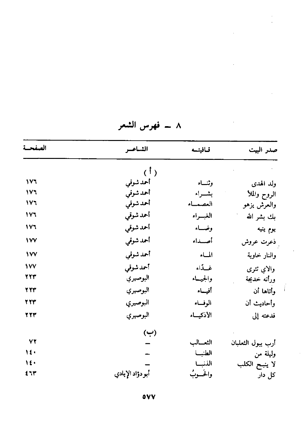 صدر البيت/ قافيته/ الشاعر/ الصفحة