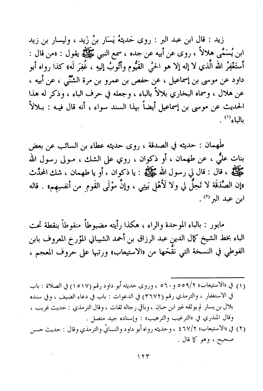 (¬2) في "الاستيعاب" 2/ 467، وحديثه رواه أبو داود والنسائي والترمذي وقال: حديث حسن صحيح، وهو كما قال.