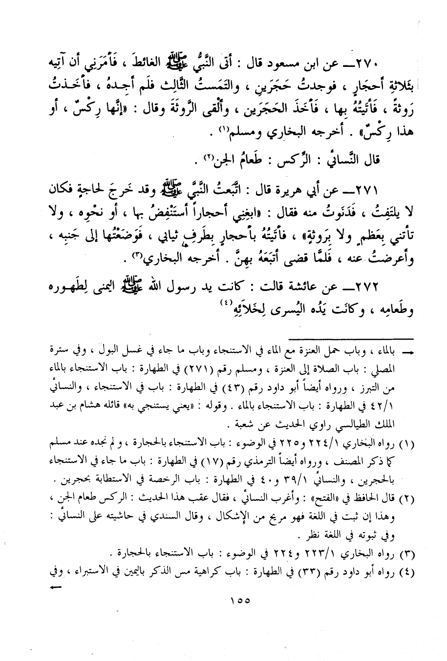 (¬3) رواه البخاري 1/ 223 و 224 في الوضوء. باب الاستنجاء بالحجارة.