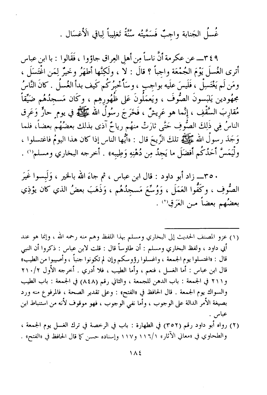 (¬2) رواه أبو داود رقم (352) في الطهارة: باب في الرخصة في ترك الغسل يوم الجمعة، والطحاوي في "معاني الآثار" 1/ 116 و 117 وإسناده حسن كما قال الحافظ في "الفتح".