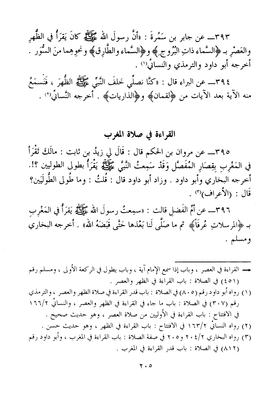 (¬3) رواه البخاري 2/ 204 و 205 في صفة الصلاة: باب القراءة في المغرب، وأبو داود رقم (812) في الصلاة: باب قدر القراءة في المغرب.