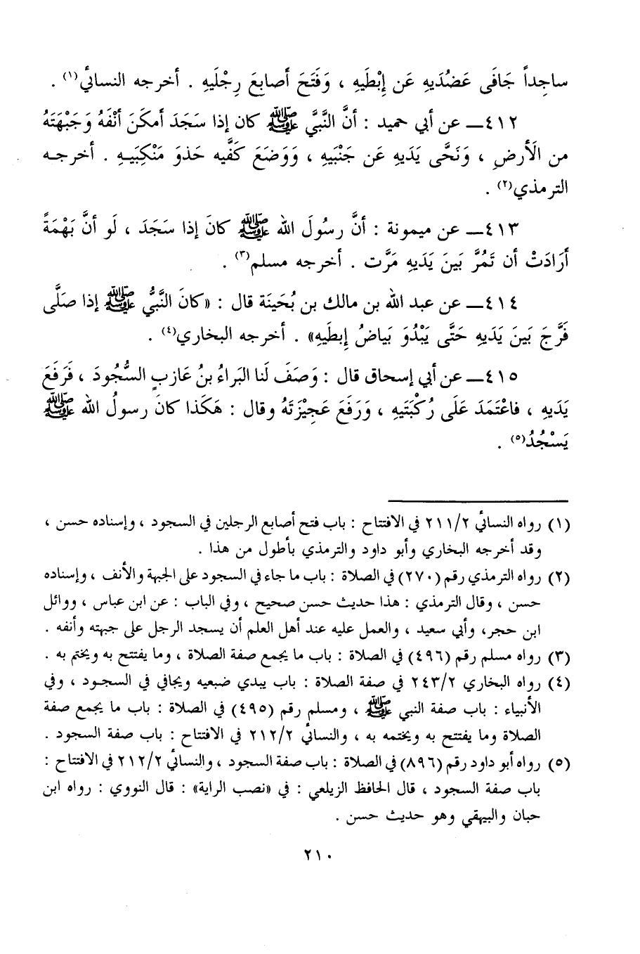 (¬5) رواه أبو داود رقم (896) في الصلاة: باب صفة السجود، والنسائي 2/ 212 في الافتتاح: باب صفة السجود، قال الحافظ الزيلعي: في "نصب الراية": قال النووي: رواه ابن حبان والبيهقي وهو حديث حسن.