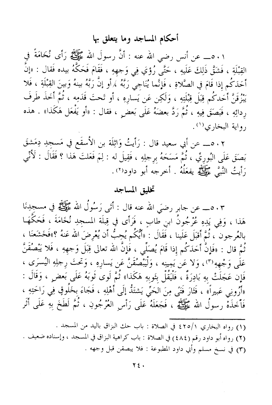 (¬2) رواه أبو داود رقم (484) في الصلاة: باب كراهية البزاق في المسجد، وإسناده ضعيف.