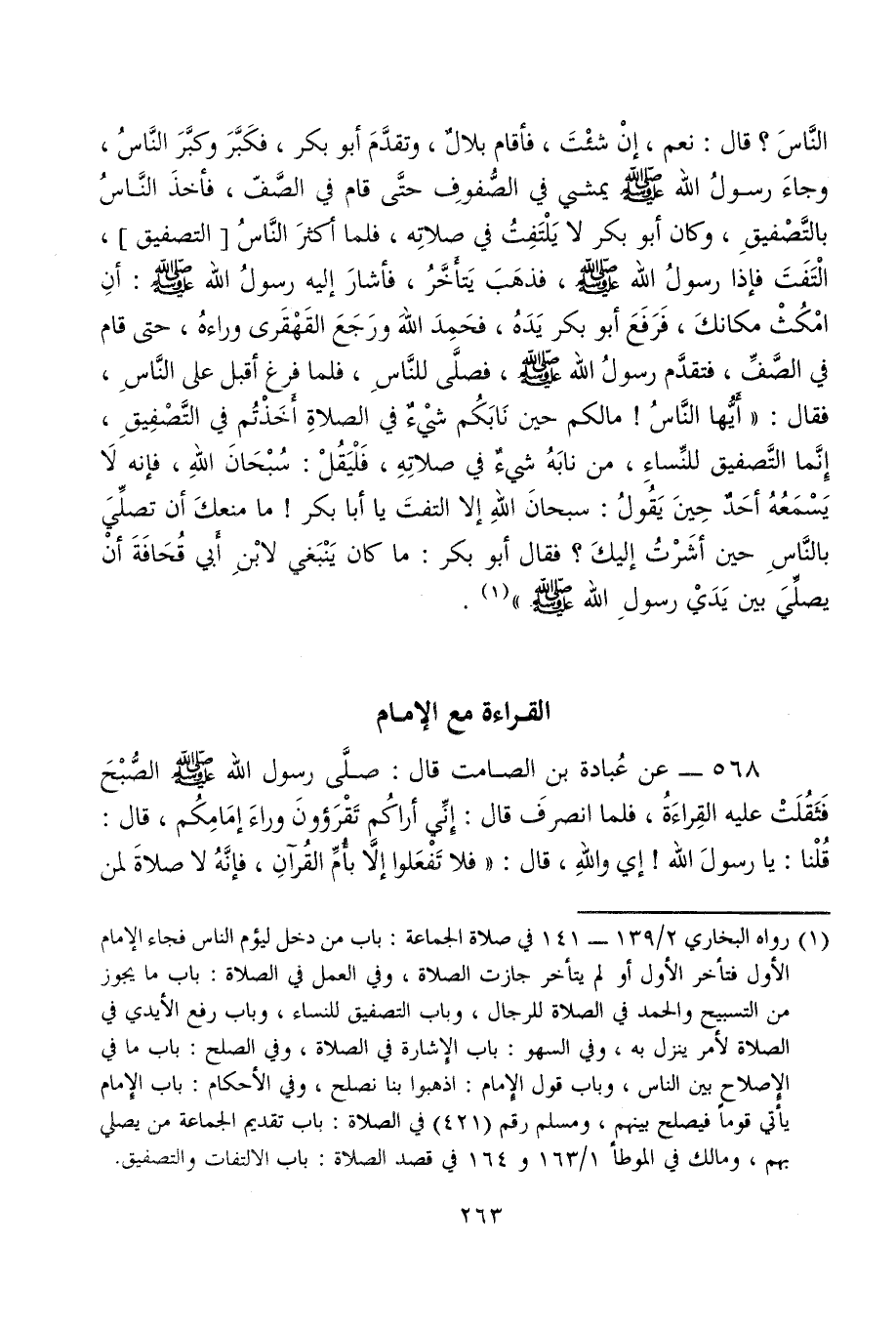 (¬1) رواه البخاري 2/ 139 - 141 في صلاة الجماعة: باب من دخل ليؤم الناس فجاء الإمام الأول فتأخر الأول أو لم يتأخر جازت الصلاة، وفي العمل في الصلاة: باب ما يجوز من التسبيح والحمد في الصلاة للرجال، وباب التصفيق للنساء، وباب رفع الأيدي في الصلاة لأمر ينزل به، وفي السهو: باب الإشارة في الصلاة، وفي الصلح: باب ما في الإصلاح بين الناس، وباب قول الإِمام: اذهبوا بنا نصلح، وفي الأحكام: باب الإِمام يأتي قومًا فيصلح بينهم، ومسلم رقم (421) في الصلاة: باب تقديم الجماعة من يصلي بهم، ومالك في الموطأ 1/ 163 و 164 في قصد الصلاة: باب الالتفات والتصفيق.