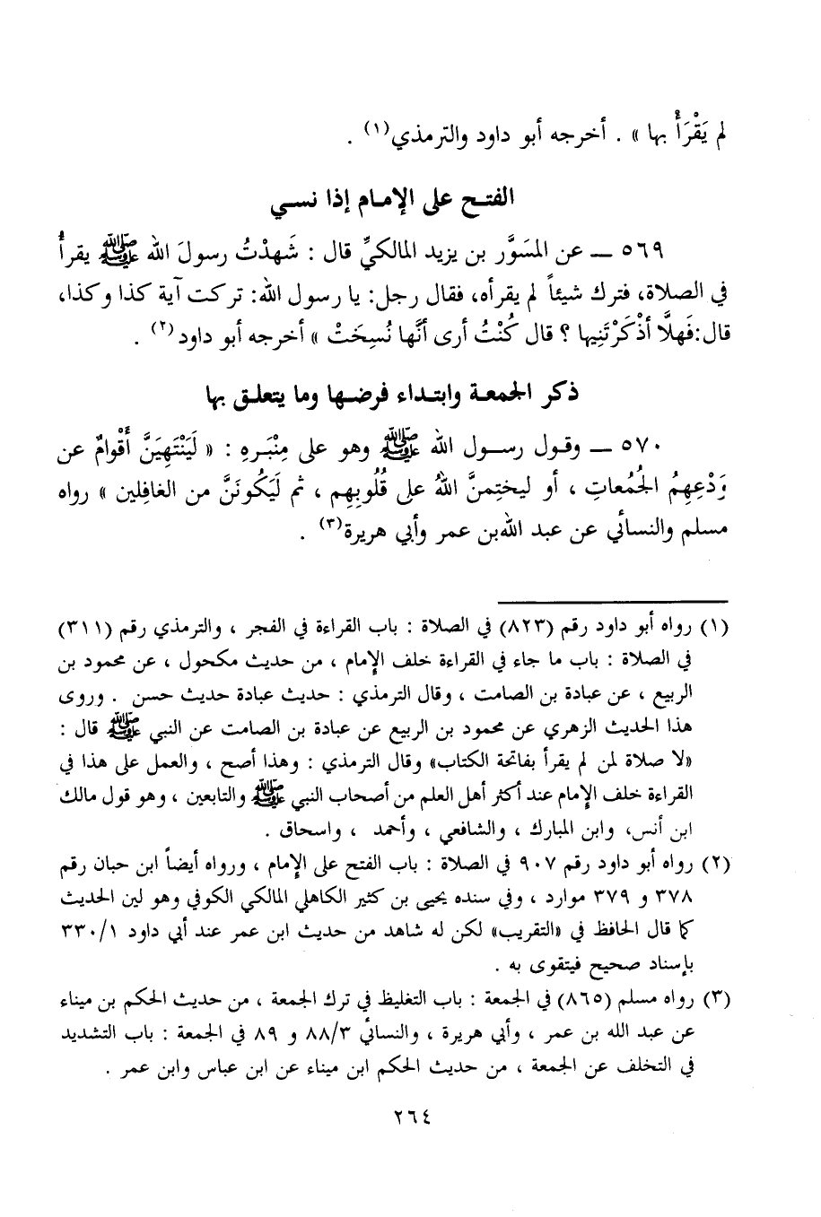 570 - وقول رسول الله - صلى الله عليه وسلم - وهو على مِنْبَرهِ: "لَيَنْتَهِيَنَّ أَقْوامٌ عن وَدْعِهِمُ الجُمُعاتِ، أو ليختِمنَّ اللهُ على قُلُوبِهِم، ثم لَيَكُونَنَّ من الغافِلين" رواه مسلم والنسائي عن عبد الله بن عمر وأبي هريرة (¬3).