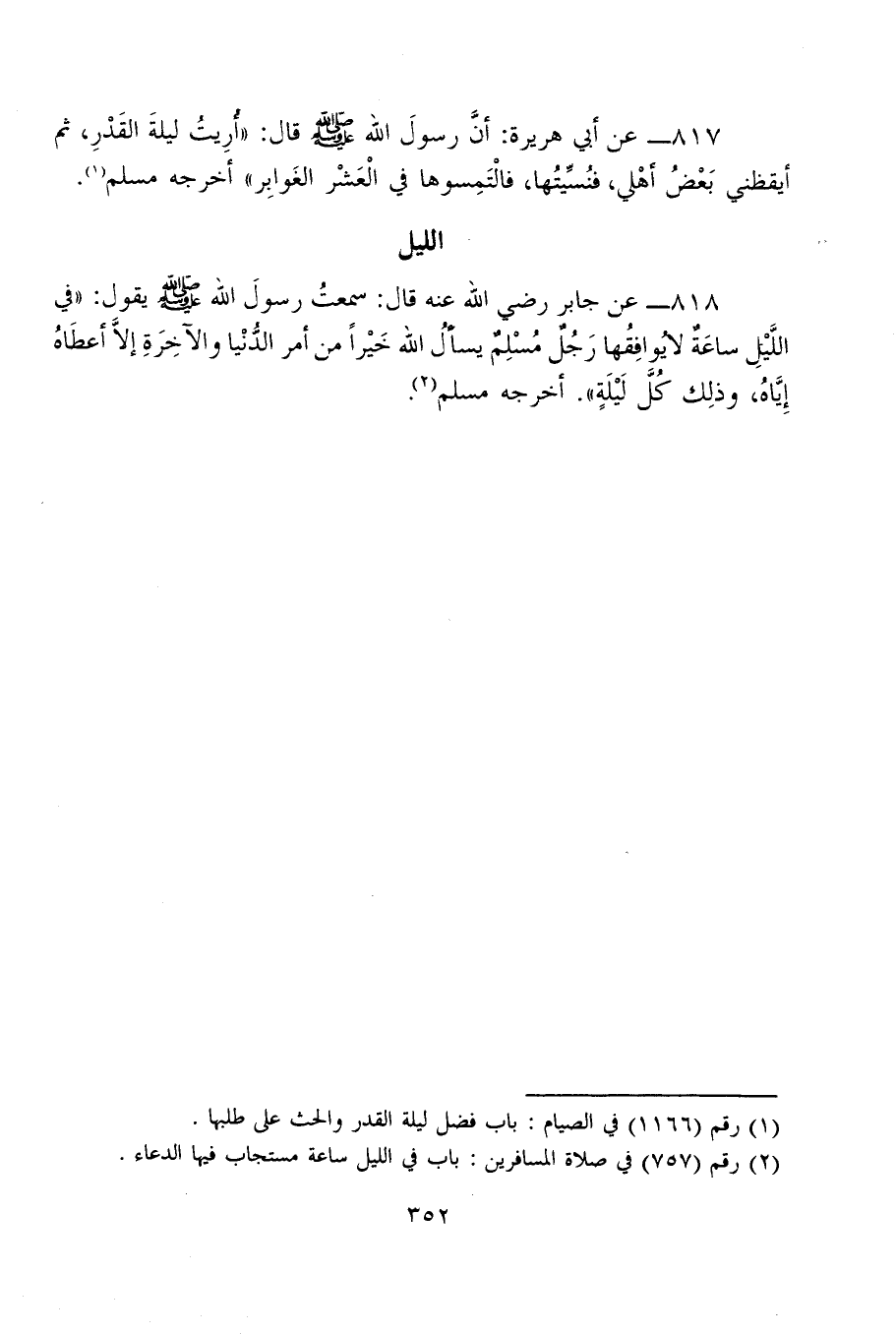 (¬2) رقم (757) في صلاة المسافرين: باب في الليل ساعة مستجاب فيها الدعاء.