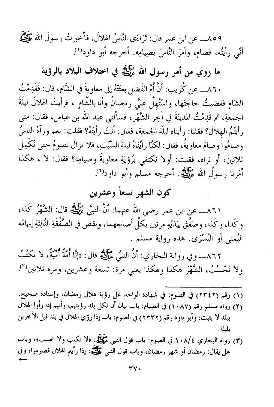 (¬2) رواه مسلم رقم (1087) في الصيام: باب بيان أن لكل بلد رؤيتهم، وأنهم إذا رأوا الهلال ببلد لا يثبت، وأبو داود رقم (2332) في الصوم: باب إذا رؤي الهلال في بلد قبل الآخرين بليلة.