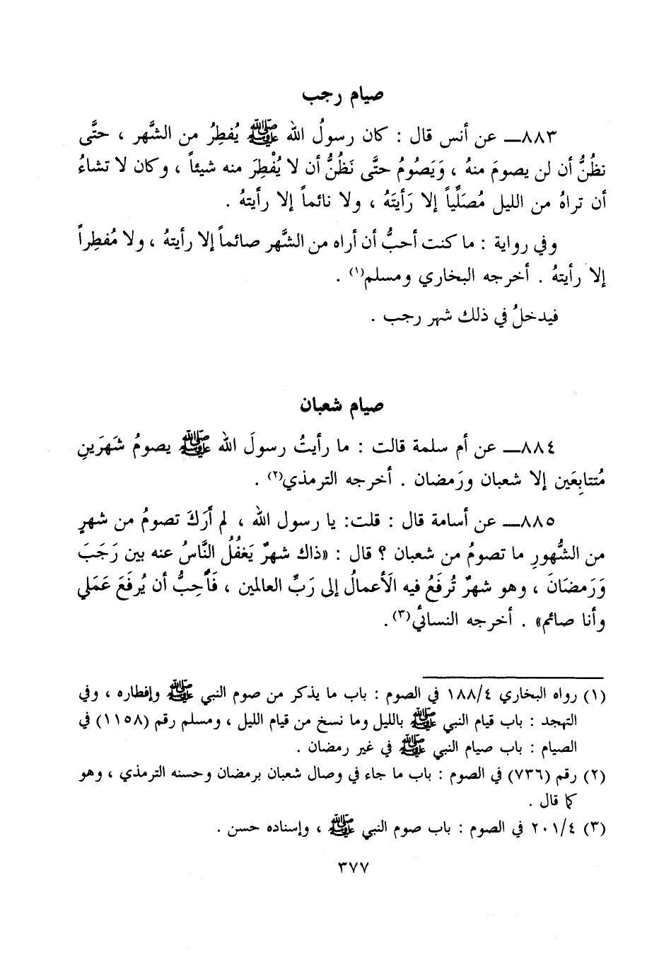 (¬1) رواه البخاري 4/ 188 في الصوم: باب ما يذكر من صوم النبي - صلى الله عليه وسلم - وإفطاره، وفي التهجد: باب قيام النبي - صلى الله عليه وسلم - بالليل وما نسخ من قيام الليل، ومسلم رقم (1158) في الصيام: باب صيام النبي - صلى الله عليه وسلم - في غير رمضان.