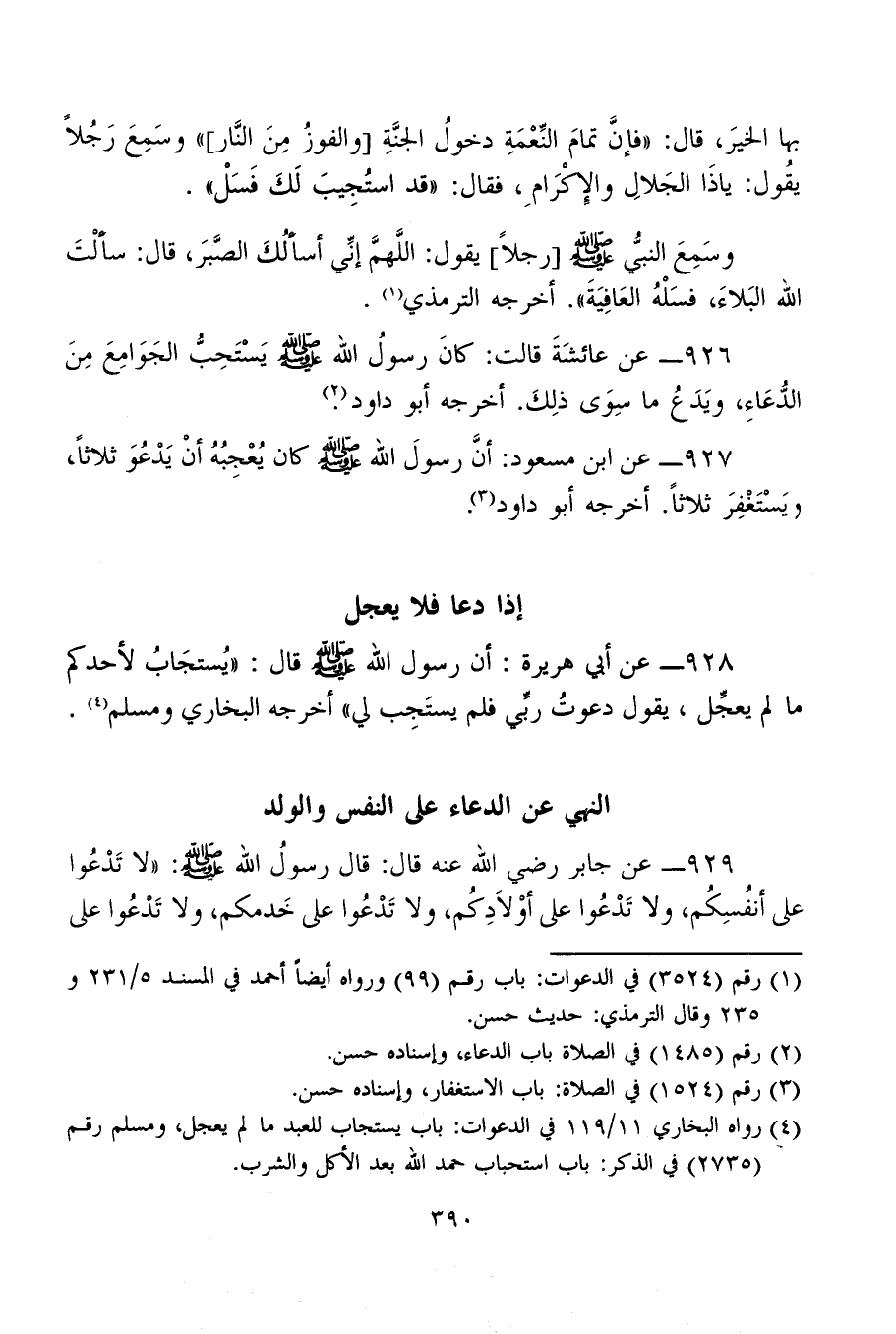 929 - عن جابر رضي الله عنه قال: قال رسولُ الله - صلى الله عليه وسلم -: "لا تَدْعُوا على أنفُسِكُم، ولا تَدْعُوا على أوْلَادِكُم، ولا تَدْعُوا على خَدمكم، ولا تَدْعُوا على