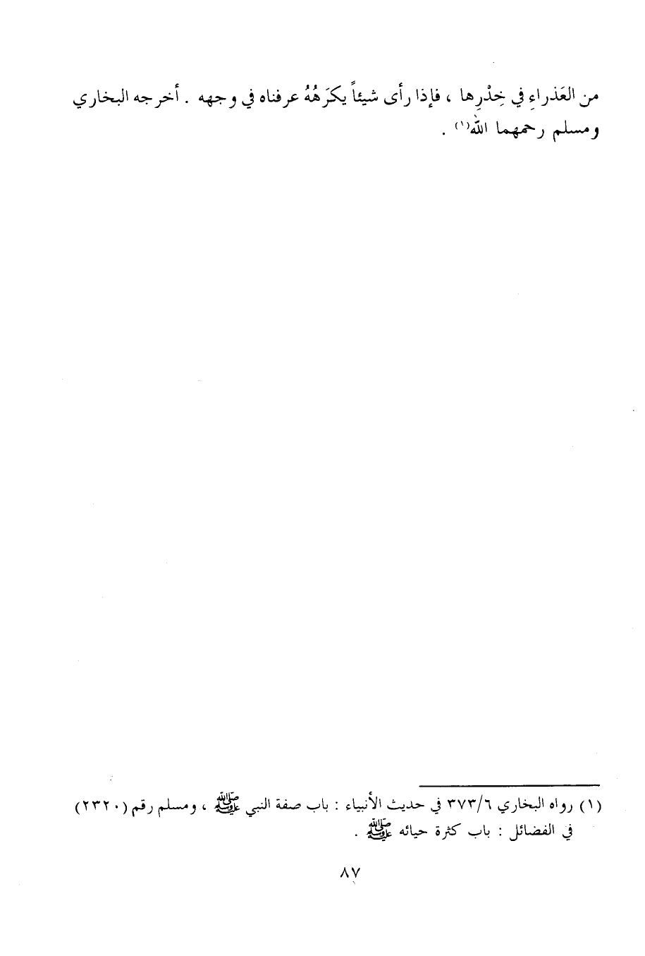 (¬1) رواه البخاري 6/ 373 في حديث الأنبياء: باب صفة النبي - صلى الله عليه وسلم -، ومسلم رقم (2320) في الفضائل: باب كثرة حيائه - صلى الله عليه وسلم -.