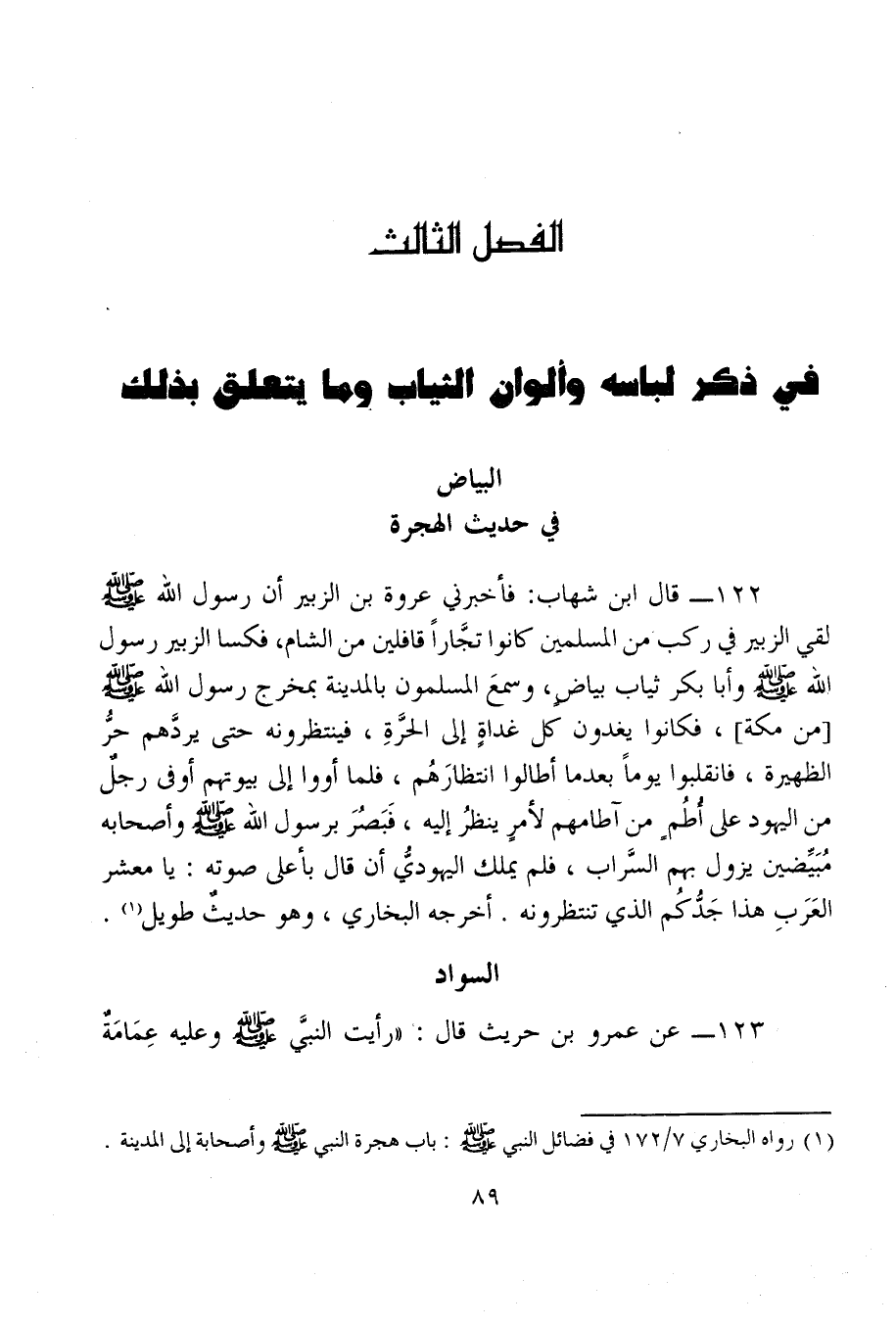 الفصل الثالث: في ذكر لباسه وألوان الثياب وما يتعلق بذلك