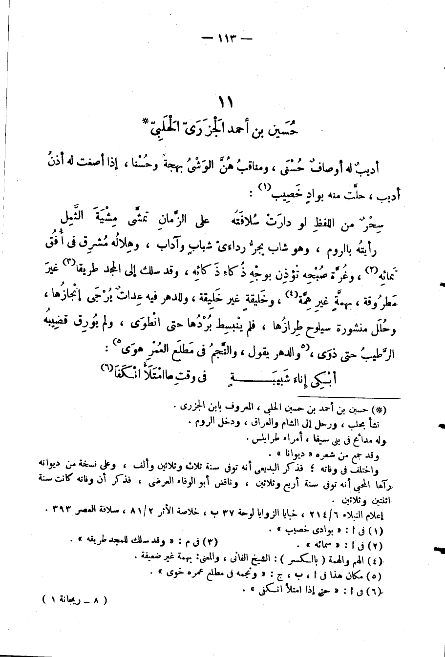 أديبٌ له أوصافٌ حُسْنَى، ومناقبُ هُنَّ الوَشْيُ بهجةً وحُسْناً، إذا أصغت له أذنُ أديب، حلَّت منه بوادٍ خَصِيب.