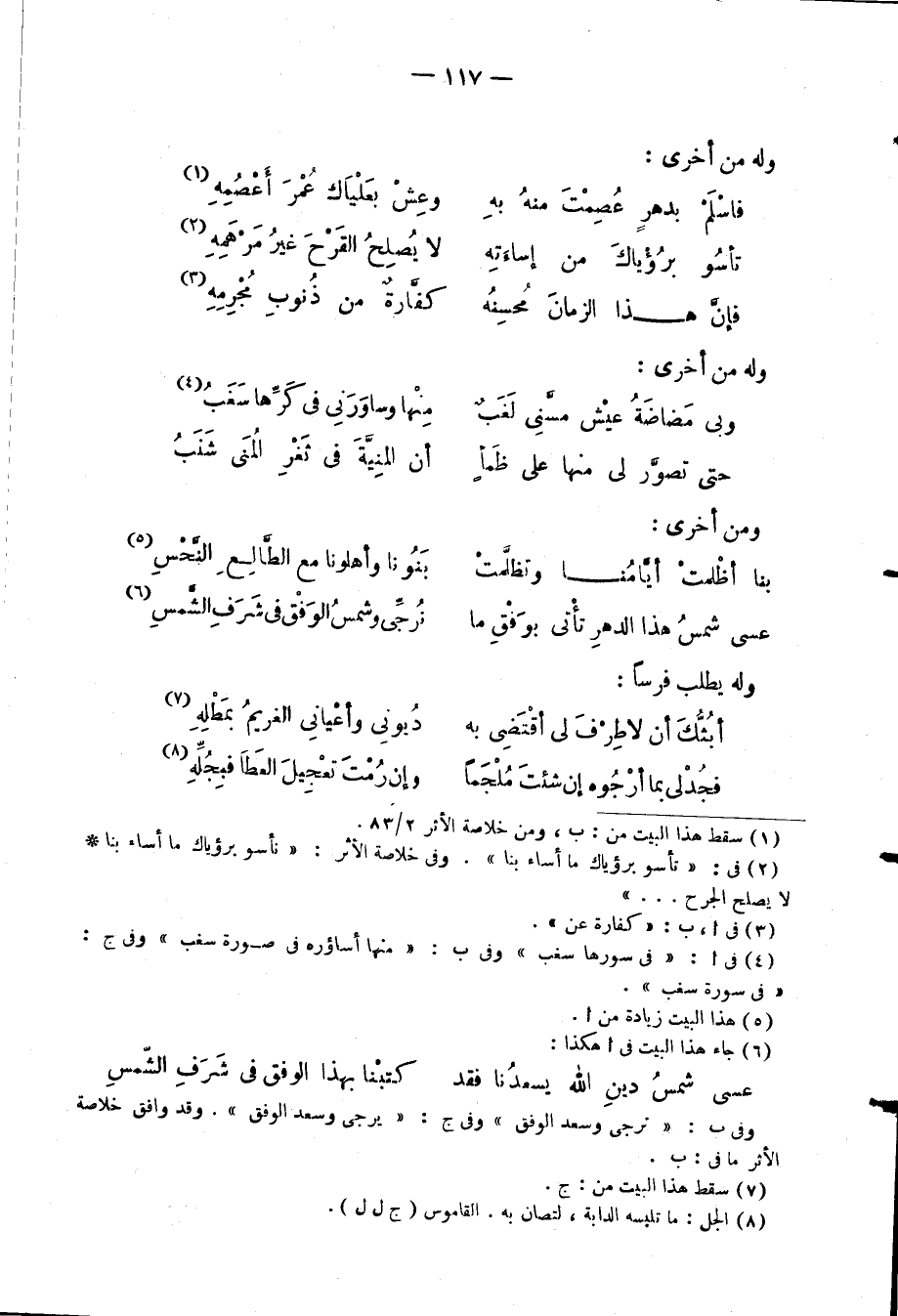 عسى شمسُ هذا الدهرِ تأْتي بوَفْقَ ما ... نُرجِّى وشمسُ الوَفْق في شَرَفِ الشَّمسِ