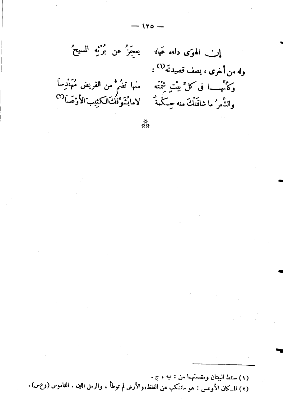 إن الهوَى داءهُ عَياءٌ ... يعجِزُ عن بُرْئِه المسيحُ