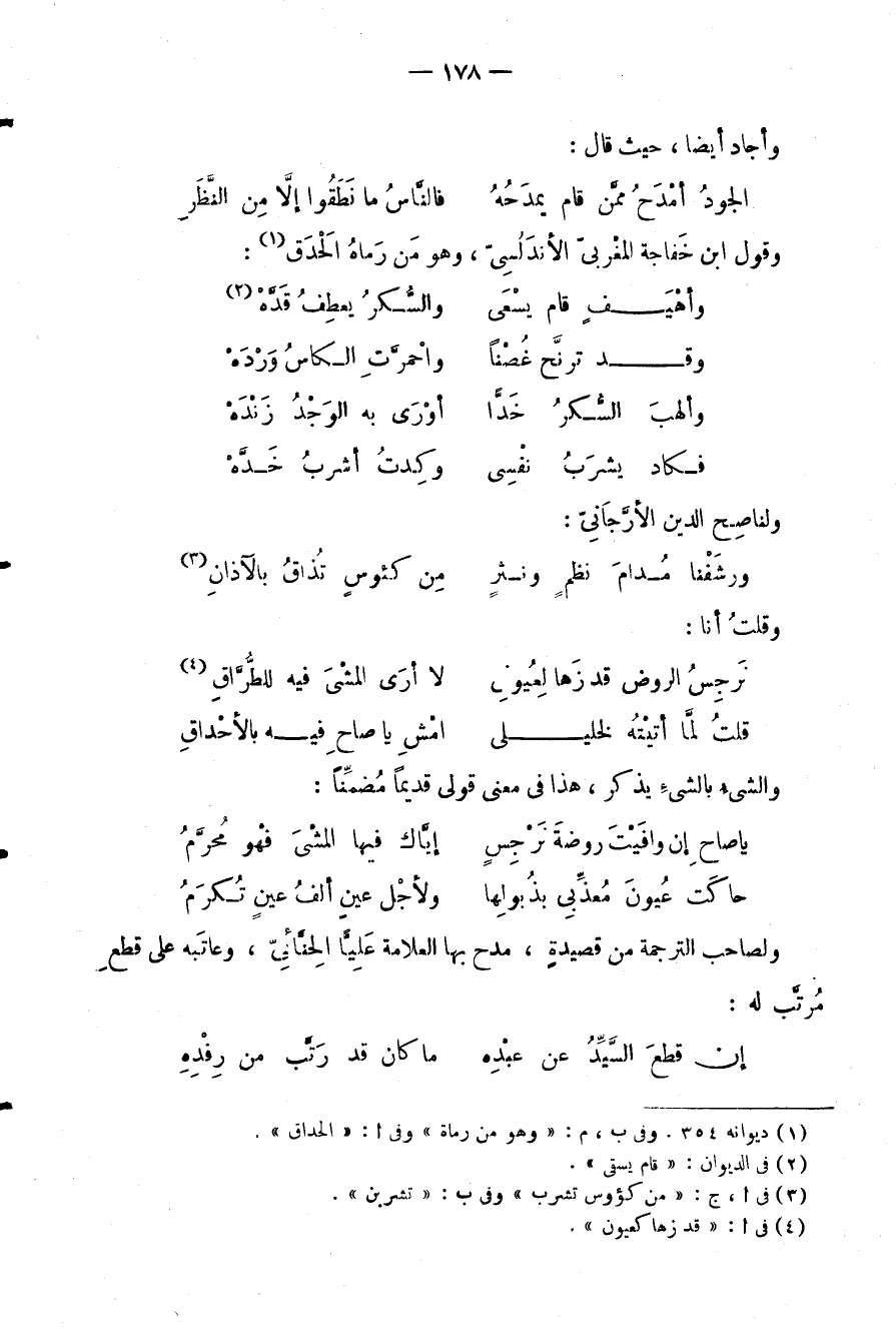 وقوله ابن خَفاجة المغْربيّ الأندَلُسِيّ، وهو مَن رَماهُ الْحَدَق: