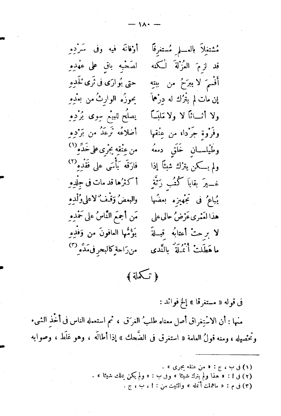 إن مات لم يتْرُك له دِرْهما ... يحوزُه الوارِثُ من بعْدِهِ
