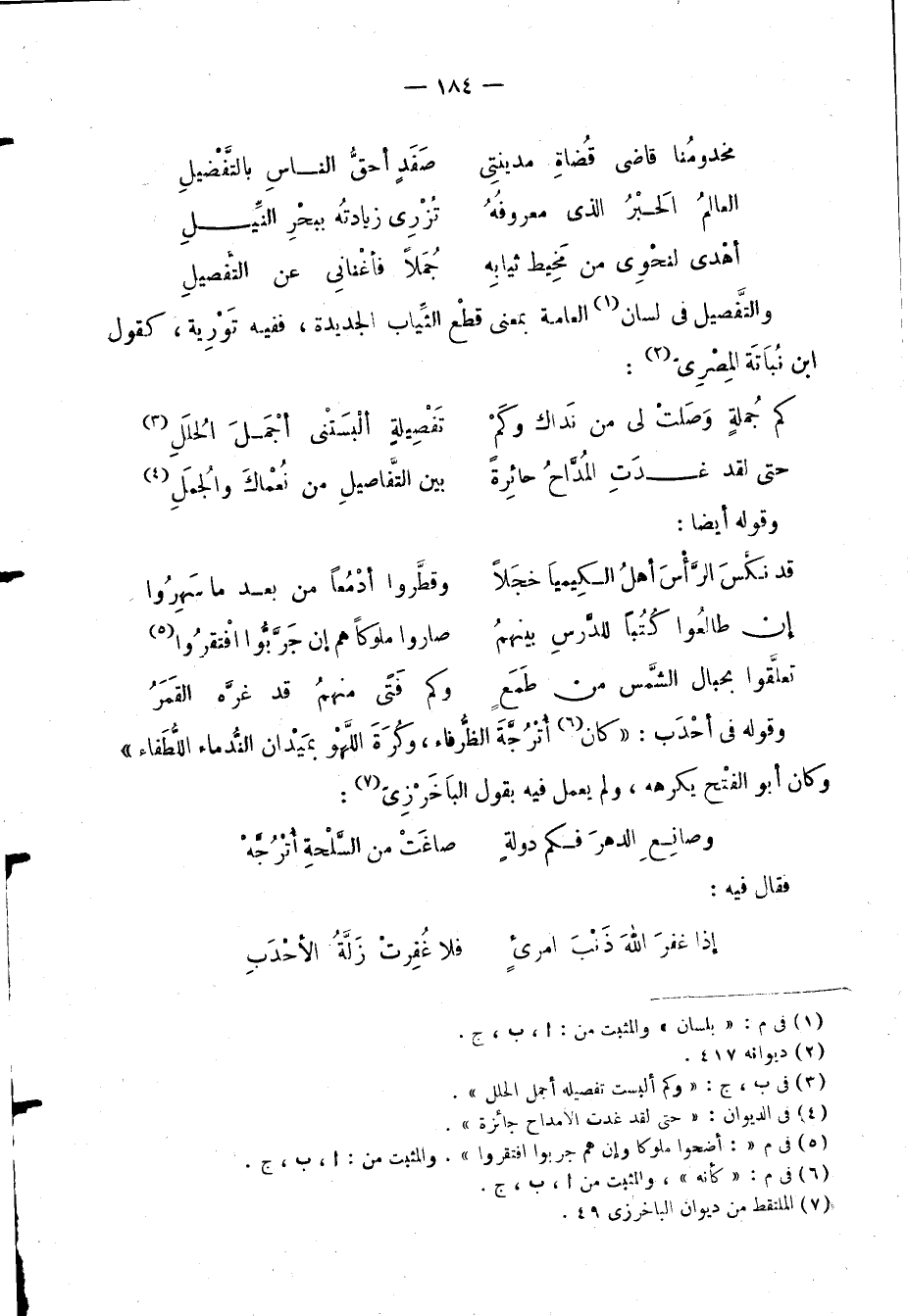 مخدومنُاً قاضي قُضاةِ مدينتِي ... صَفَدٍ أحقٌّ الناسِ بالتَّفْضيلِ