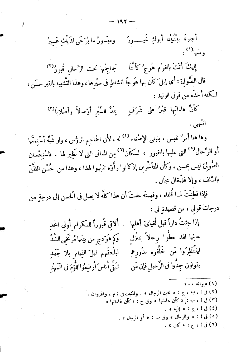 وها هنا أمرٌ نفيس، ينبغي الإصغاء له، لأن الجماجِم الرؤُس، ولو شَبَّه أسْنِمتَها أو الرِّحال التي عليها بالقبور، لكَان مِن المعاني التي لا نَظِير لها. فاسْتِحْسان الصُّوِلِي ليس بحسن، وكان المتأخِّرين إذ كانوا رأَوْه تنبَّهوا لهذا، وهذا من حُسْن الظَّن بالسَّلف، وإلا فللْمقال مجَال.