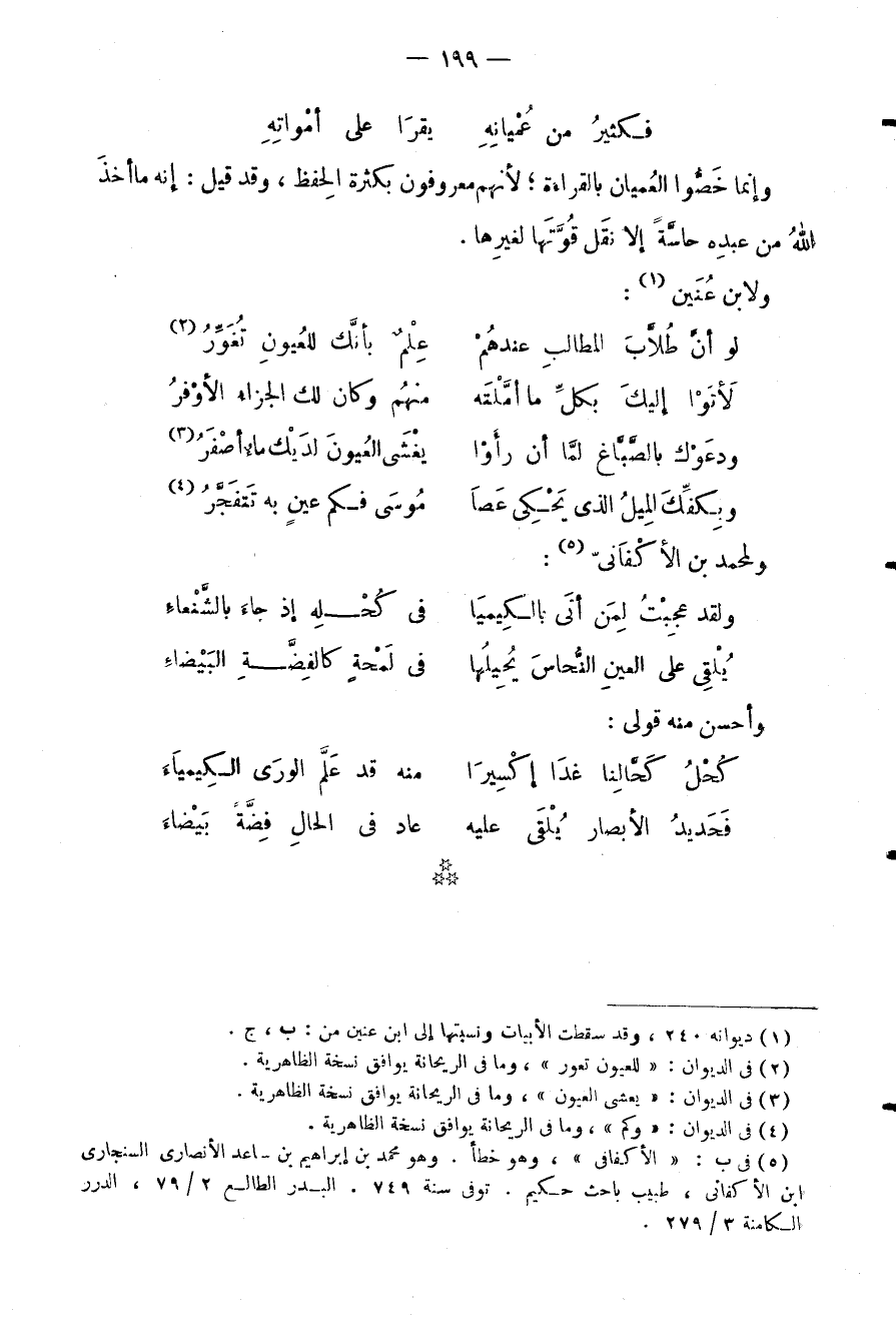 كُحْلُ كَحَّالِنا غدَا إكْسِيرَا ... منه قد عَلَّم الورَى الكِيميَاءَ