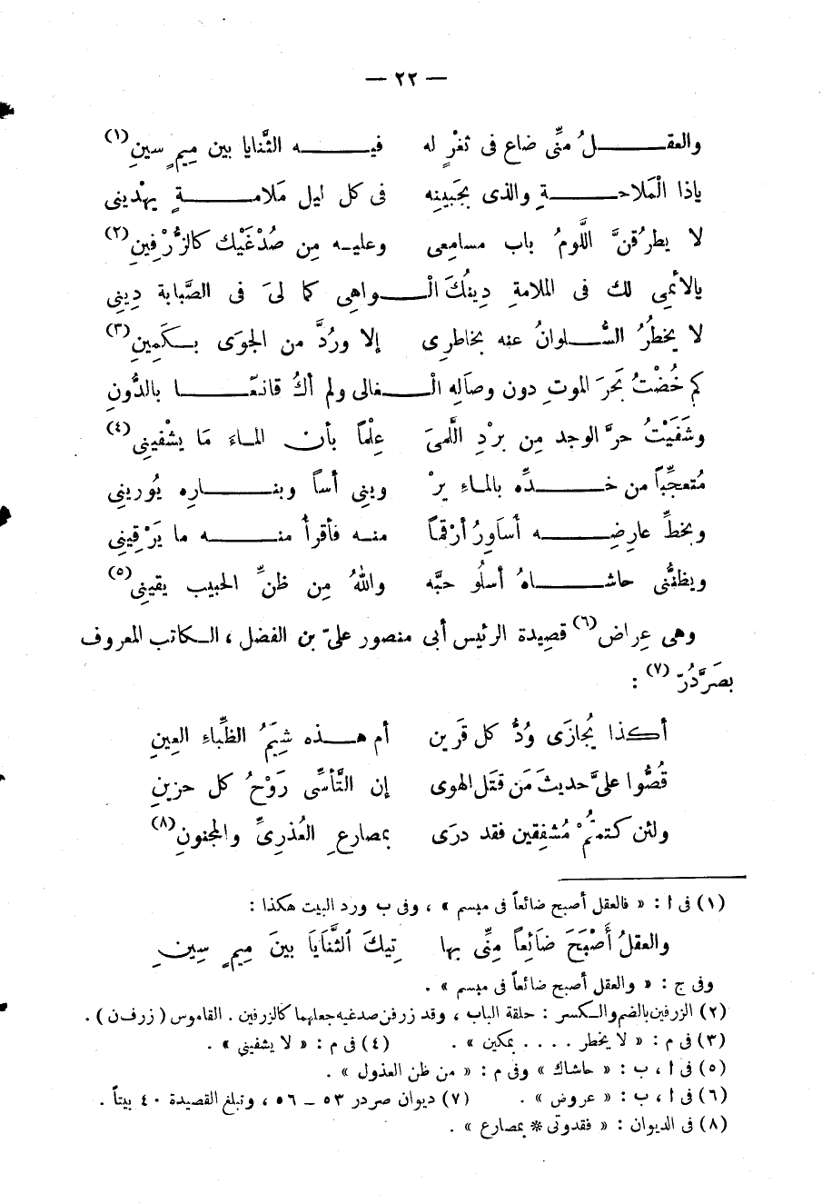 وهي عِراض قصيدة الرئيس أبي منصور عليّ بن الفضل، الكاتب المعروف بصرَّدُرّ: