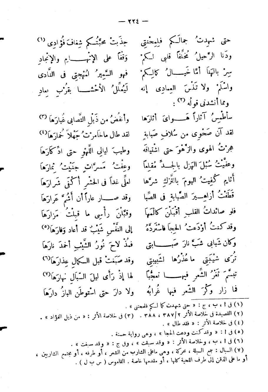 هجْرتُ الهوى والزَّهْوَ حتى اشْتياقَه ... وطيبَ لياليِ الَّلهْوِ حتى ادِّكَارَهاَ