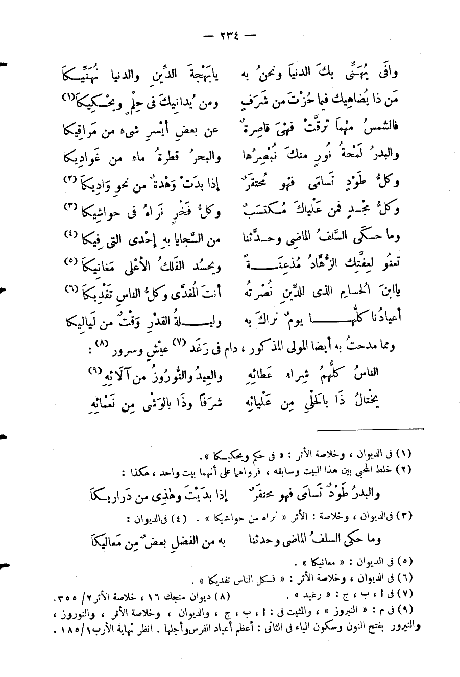 وافَى يُهَنَّى بكَ الدنياَ ونحنُ به ... يا بَهْجةَ الدَّينِ والدنيا نُهَنَّيكاَ