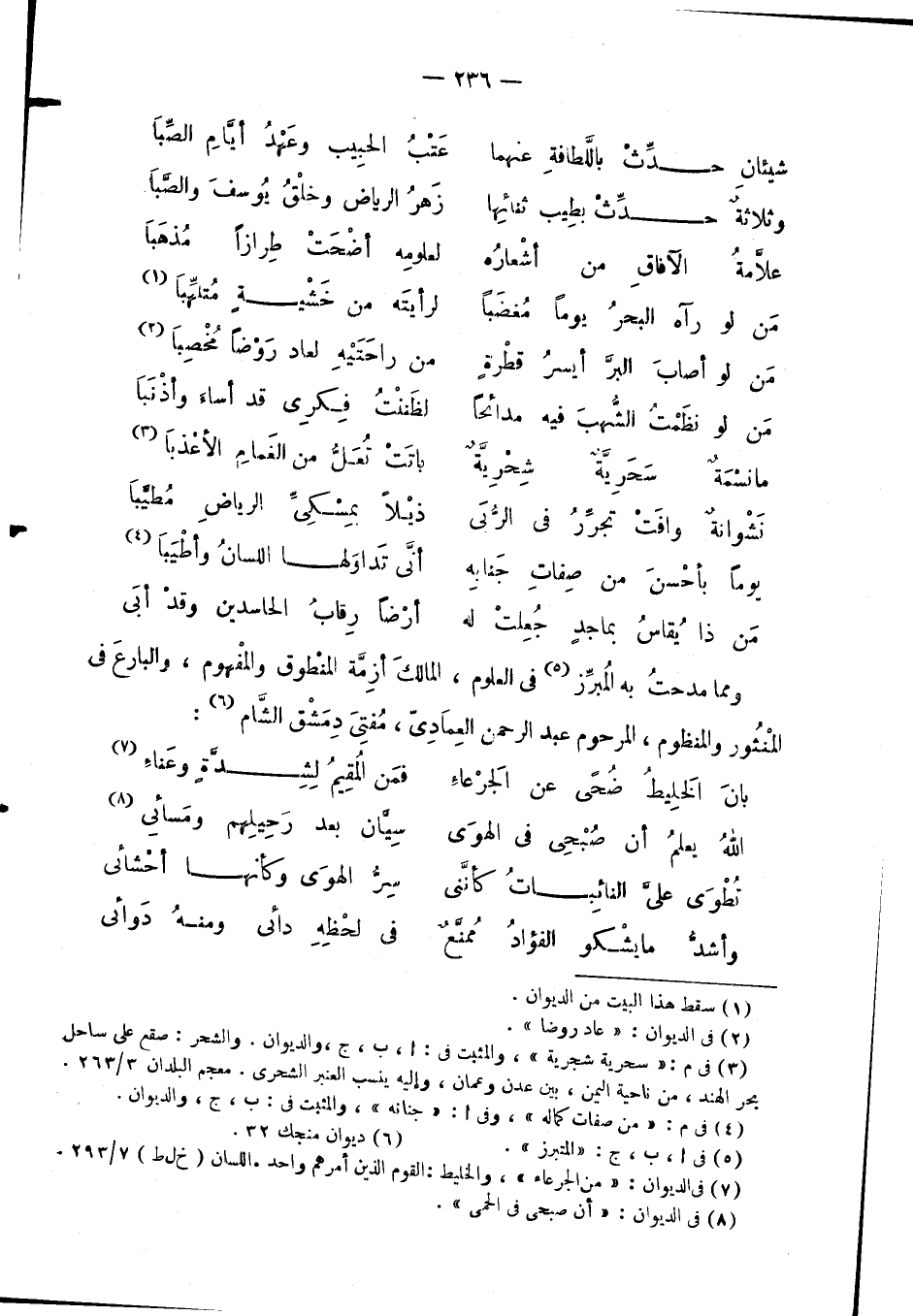ومما مدحت به المبرز في العلوم، المالك أزمة المنطوق والمفهوم، والبارع في المنثور والمنظوم، المرحوم عبد الرحمن العمادي، مفتى دمشق الشام: