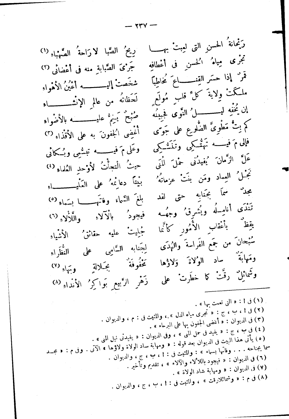 وشَمائِلٌ رقَّتْ كما خطَرتْ على ... زَهْرِ الرَّبيعِ بَواكِرُ الأنْداءِ