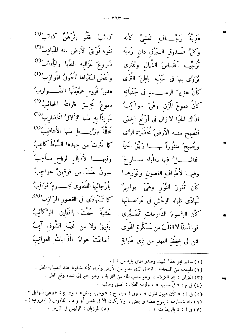 وكلَّ صَدوقِ البَرْقِ دانٍ رَبابُة ... تنُوءُ فُوَيقَ الأرض منه الهَيادِبُ