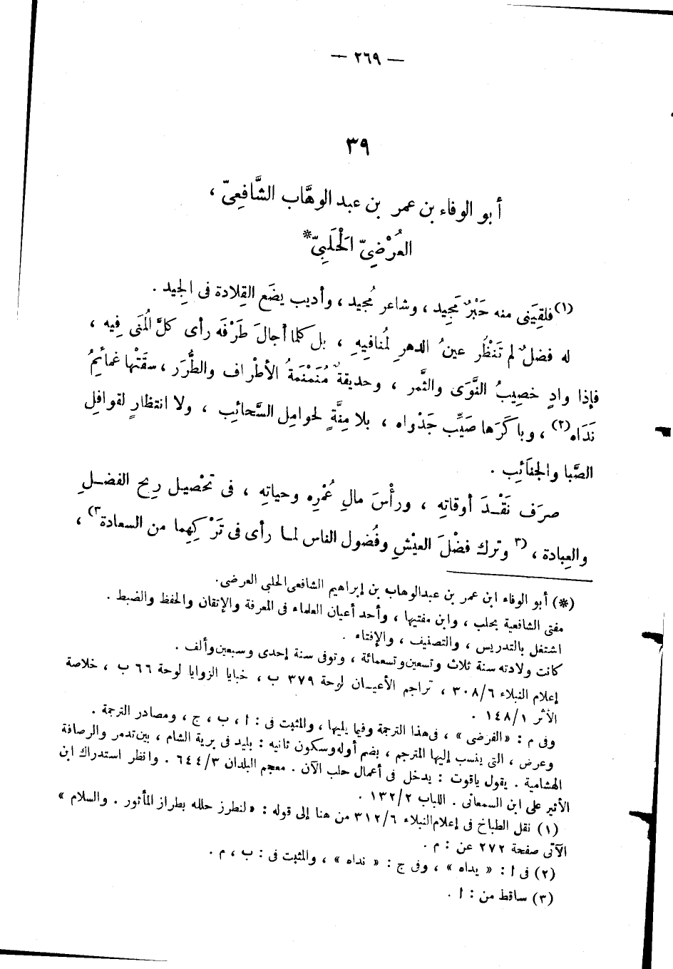 أبو الوفاء بن عمر بن عبد الوهاب الشافعي، العرضي الحلبي