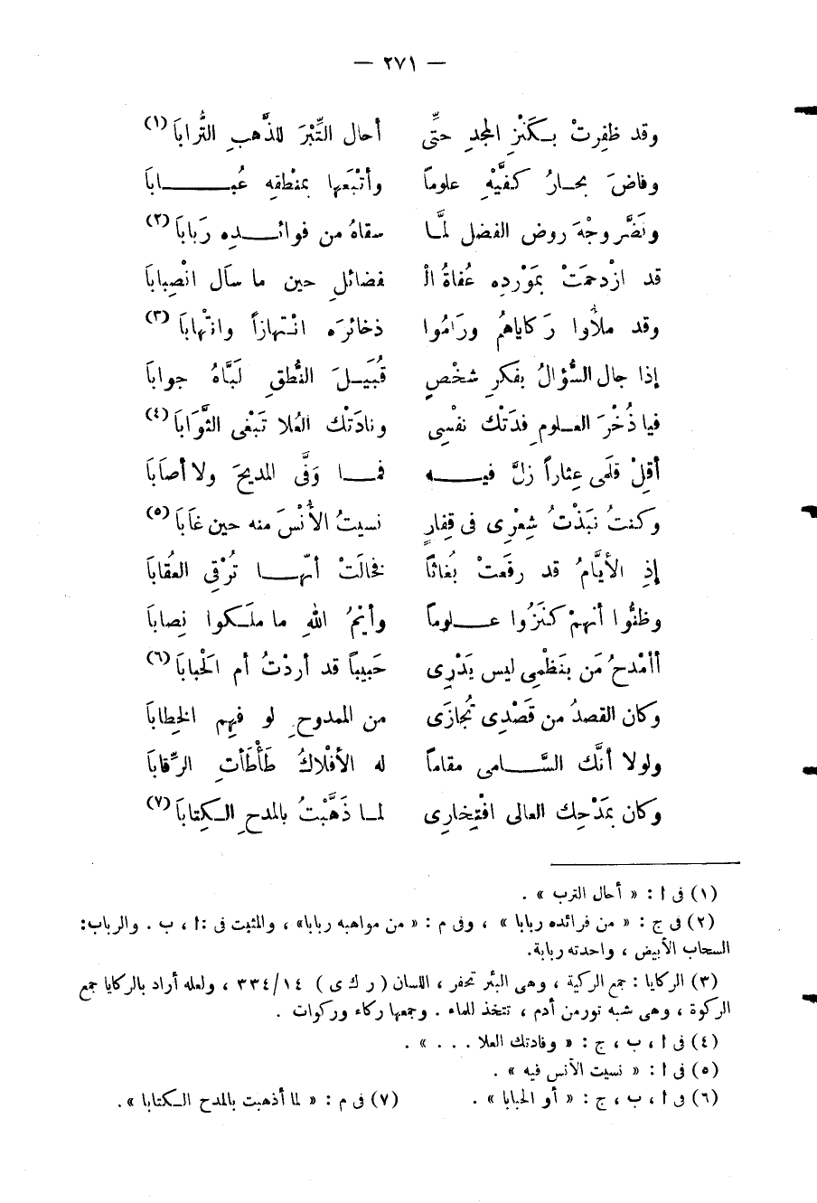 فيا ذُخْرَ العلومِ فدَتْكَ نفْسِي ... ونادَتْك العُلا تَبْغى الثّضوَاباَ
