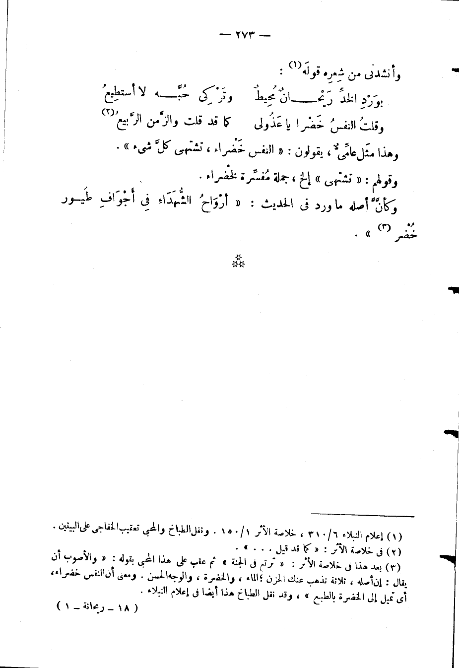 وكان اصله ما ورد في الحديث:) أرواح الشهداء في أجواف طيور خضر.
