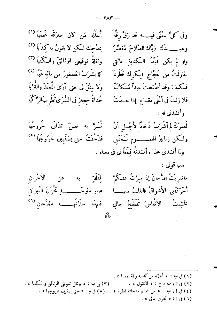 ما شرِبْتُ الدُّخانَ إذ سِرْتُ عنكُمْ ... لِتَلَةٍّ به عن الأحْزانِ