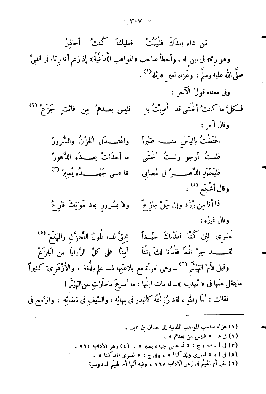 وهو رثاء في ابن له، وأخطأ صاحب) الموهبة اللدنية (إذ زعم أنه رثاء في النبي صلى الله عليه وسلم، وعزاه لغير قائله.