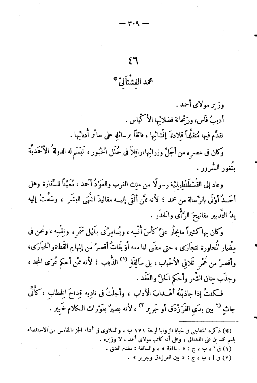 وكان في عصره من أجل وزرائها، رافلا في حلل الحبور، تبسم له الدولة الأحمدية بثغور السرور.